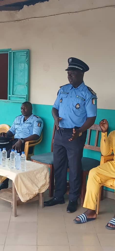 La rencontre était présidée par le Commissaire de Police de 1ʳᵉ classe Ouattara Issouf, chef de service du Commissariat de Police de Duékoué, assisté de plusieurs de ses collaborateurs. Dans un climat d’écoute et de responsabilité partagée, le premier responsable de la police locale a posé le cadre des échanges en rappelant la mission fondamentale de la Police nationale. « Notre rôle est avant tout d’assurer la protection des personnes, des biens et des institutions de la République », a-t-il déclaré d’entrée.