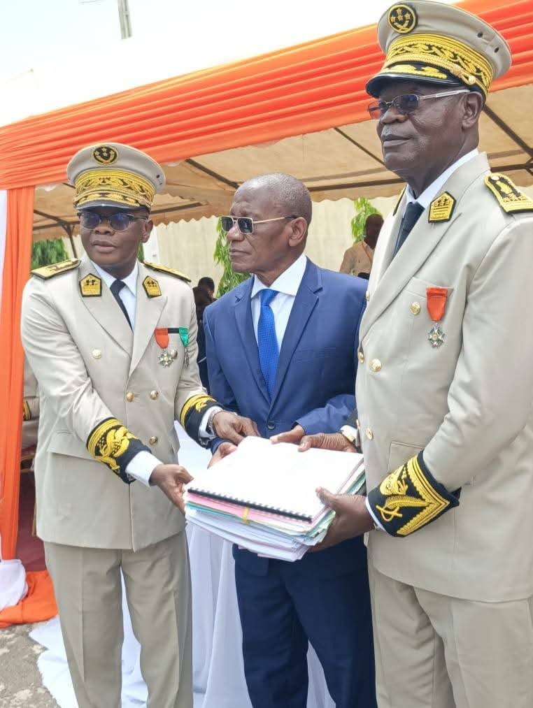 Duékoué, le 24 avril 2026. La cour de la préfecture de Duékoué a servi de cadre, ce vendredi, à la cérémonie officielle de passation de charges entre le préfet sortant Ibrahima Cissé, muté dans la région du Sud-Comoé, et son successeur Addoh Tano.